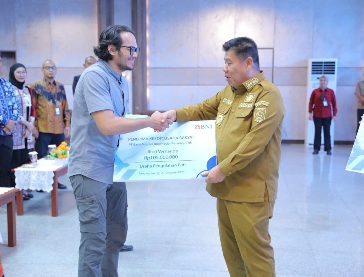 KBOBABEL.COM (PANGKALPINANG) — Gubernur Kepulauan Bangka Belitung (Babel), Hidayat Arsani, menyalurkan Kredit Usaha Rakyat (KUR) kepada 200 debitur baru yang tersebar di seluruh wilayah Babel. Kegiatan ini merupakan bagian dari pelaksanaan akad massal KUR nasional yang diikuti lebih dari 800.000 debitur di seluruh Indonesia. Acara tersebut dipimpin langsung oleh Presiden Republik Indonesia, Prabowo Subianto, dari Surabaya, Jawa Timur, pada Selasa (21/10/2025). Rabu (22/10/2025)