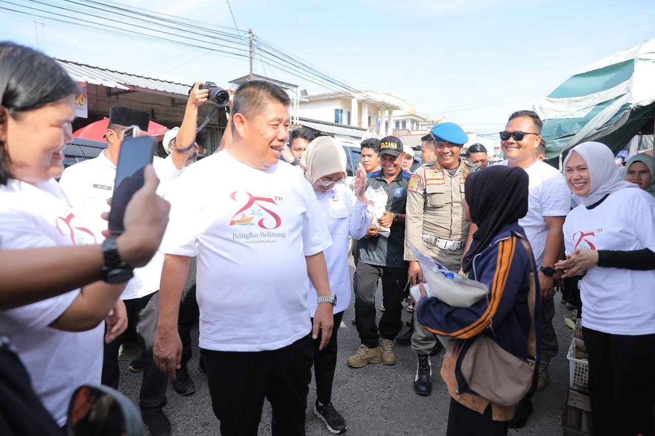 KBOBABEL.COM (PANGKALPINANG) – Peringatan Hari Ulang Tahun (HUT) ke-25 Provinsi Kepulauan Bangka Belitung (Babel) tahun 2025 kembali diwarnai dengan rangkaian kegiatan sosial yang menyentuh langsung masyarakat. Salah satu kegiatan tersebut adalah pembagian ribuan paket sembako yang dipimpin langsung oleh Gubernur Babel, Hidayat Arsani, di Pasar Air Itam Pangkalpinang pada Rabu (26/11/2025) pukul 15.30 WIB. Kamis (27/11/2025)