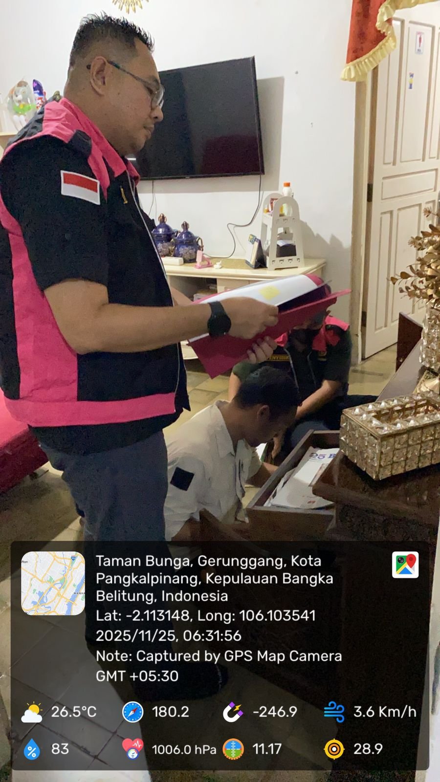 Kediaman Fauzi Trisana, S.E., MBA, yang beralamat di Jalan Mawar II Nomor A10, RT 005 RW 002, Kelurahan Taman Bunga, Kecamatan Gerunggang, Komplek Timah Bukit Baru, Pangkalpinang.