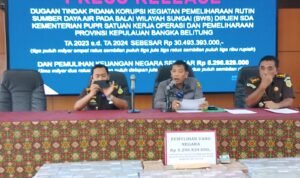 KBOBABEL.COM (Pangkalpinang) – Publik kembali dikejutkan oleh terbongkarnya praktik korupsi berjamaah di lingkungan pemerintah pusat di daerah. Kali ini, Kejaksaan Tinggi (Kejati) Kepulauan Bangka Belitung mengungkap skandal korupsi yang merugikan negara hingga miliaran rupiah dalam proyek pemeliharaan rutin di Balai Wilayah Sungai (BWS) Provinsi Babel. Kamis (26/6/2025).