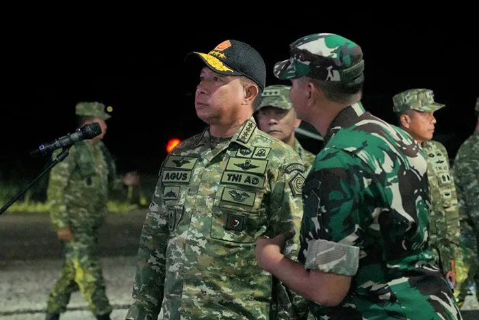 Panglima TNI Jenderal Agus Subiyanto hadir langsung meninjau jalannya latihan penerjunan tersebut. Para prajurit diterjunkan dari pesawat angkut militer di area yang telah disimulasikan sebagai zona operasi. Latihan digelar dalam kondisi minim cahaya, memaksakan penggunaan kemampuan navigasi, akurasi pendaratan, serta kecepatan penyusunan formasi tempur.