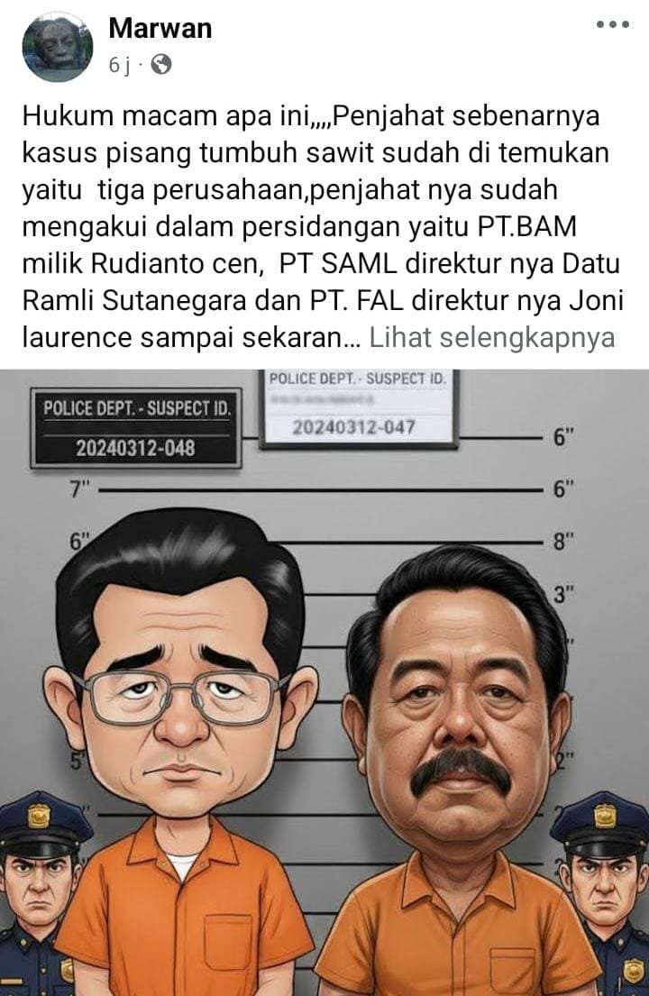 “Saya sangat kecewa. Dalam persidangan, sudah jelas siapa pelaku yang sebenarnya. Tiga perusahaan bahkan telah mengakui keterlibatannya. Tapi anehnya, mereka justru tidak diproses hukum dan masih bebas berkeliaran,” ujar Marwan dengan nada getir, Sabtu (8/11/2025).