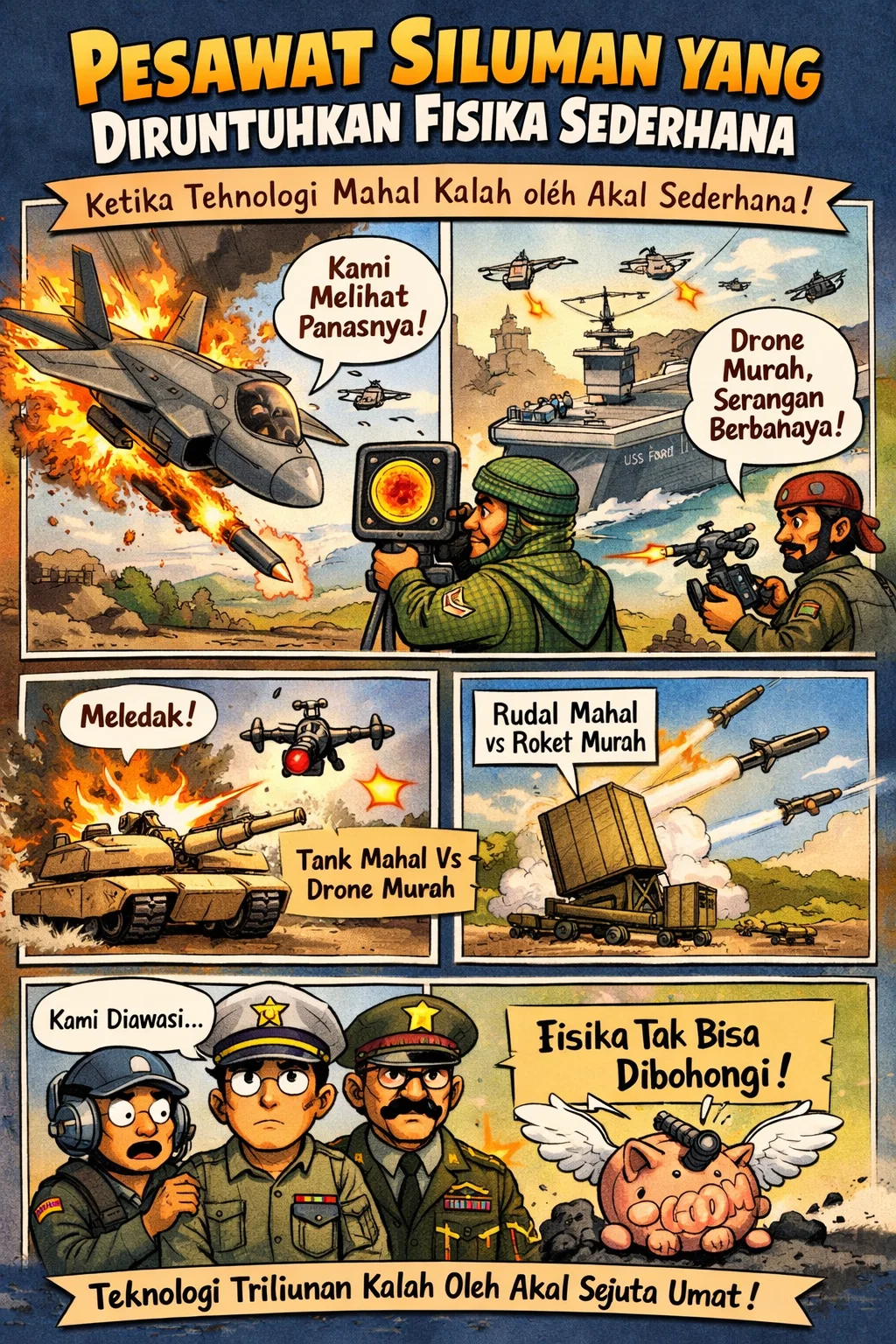 Fisika tidak tertipu oleh cat siluman atau sudut geometri yang rumit. Termodinamika tetap berjalan. Panas tetap memancar. Gerakan tetap meninggalkan jejak. Dan yang tak kalah penting, ekonomi perang tetap bekerja: musuh tidak perlu mengalahkan teknologi Anda; mereka cukup membuat Anda bangkrut mempertahankannya.