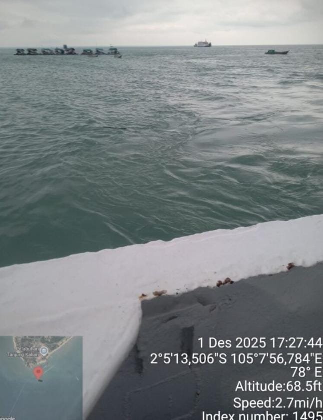 KBOBABEL.COM (Bangka Barat) — Jalur pelayaran Tanjung Kelian kembali memasuki fase paling berbahaya dalam beberapa tahun terakhir. Ponton-ponton tambang timah ilegal semakin berani merapat ke alur utama kapal feri Muntok–Palembang, Selasa (02/12/2025), hingga hanya berjarak ratusan meter dari rute resmi. Rabu (3/12/2025).