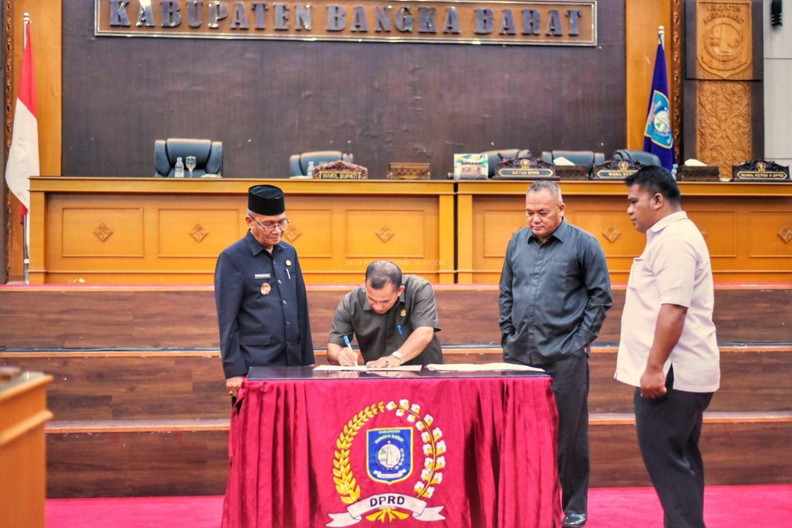 KBOBABEL.COM (BANGKA BARAT) — Dewan Perwakilan Rakyat Daerah (DPRD) bersama Pemerintah Kabupaten Bangka Barat resmi mengesahkan Rancangan Peraturan Daerah (Raperda) tentang Rencana Pembangunan Jangka Menengah Daerah (RPJMD) Tahun 2025–2029. Pengesahan dilakukan melalui rapat paripurna di Mahligai Betason II, Senin (6/10/2025), yang dihadiri pimpinan DPRD, Forkopimda, serta sejumlah kepala organisasi perangkat daerah (OPD). Selasa (7/10/2025)
