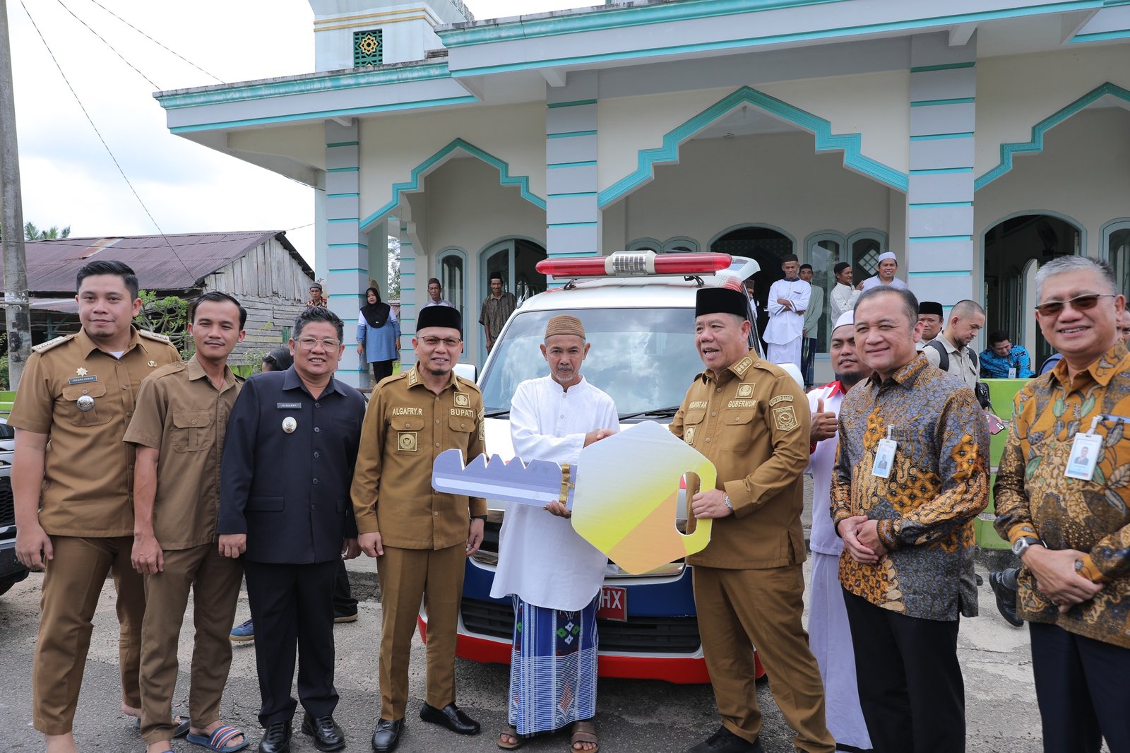 Penyerahan ambulans berlangsung sederhana namun khidmat di halaman masjid setempat. Bantuan diterima oleh Ketua Masjid Al Muhajirin, Sukron, disaksikan Bupati Algafry Rahman, Wakil Bupati Efrianda, Kepala Desa Kemingking Arwandi, tokoh masyarakat, serta ratusan warga yang hadir.