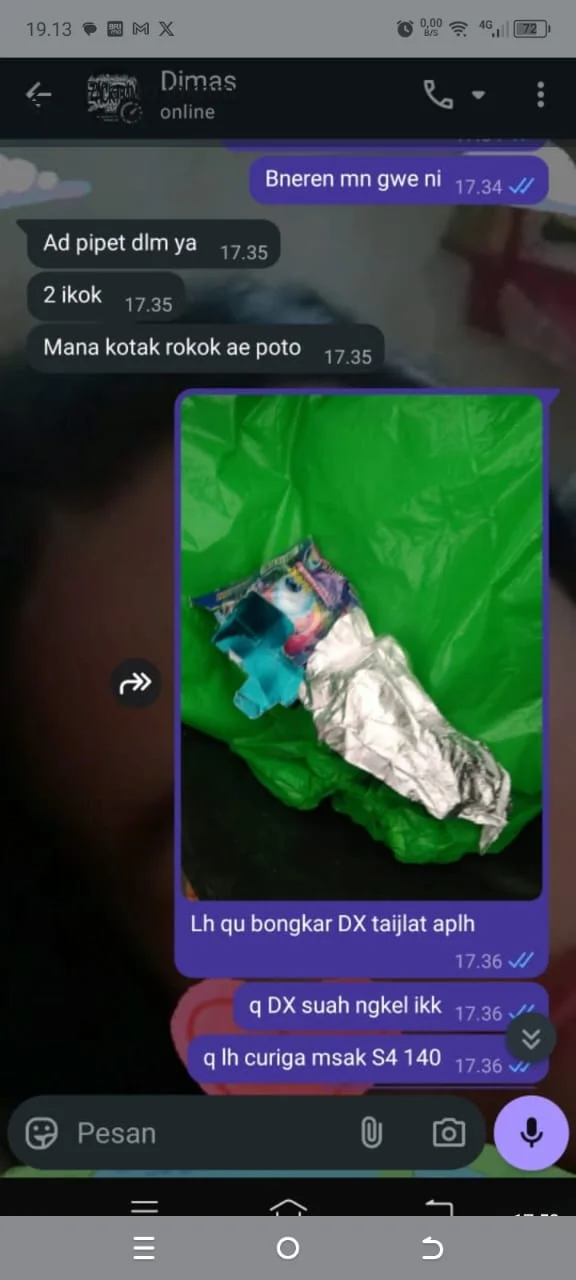 Berbekal petunjuk tersebut, pemesan segera mendatangi lokasi yang telah ditentukan. Namun, setibanya di tempat, pemesan hanya menemukan bungkus rokok kosong tanpa isi sabu-sabu sebagaimana yang dijanjikan. Merasa dirugikan, pemesan kembali menghubungi Dimas untuk meminta pertanggungjawaban.