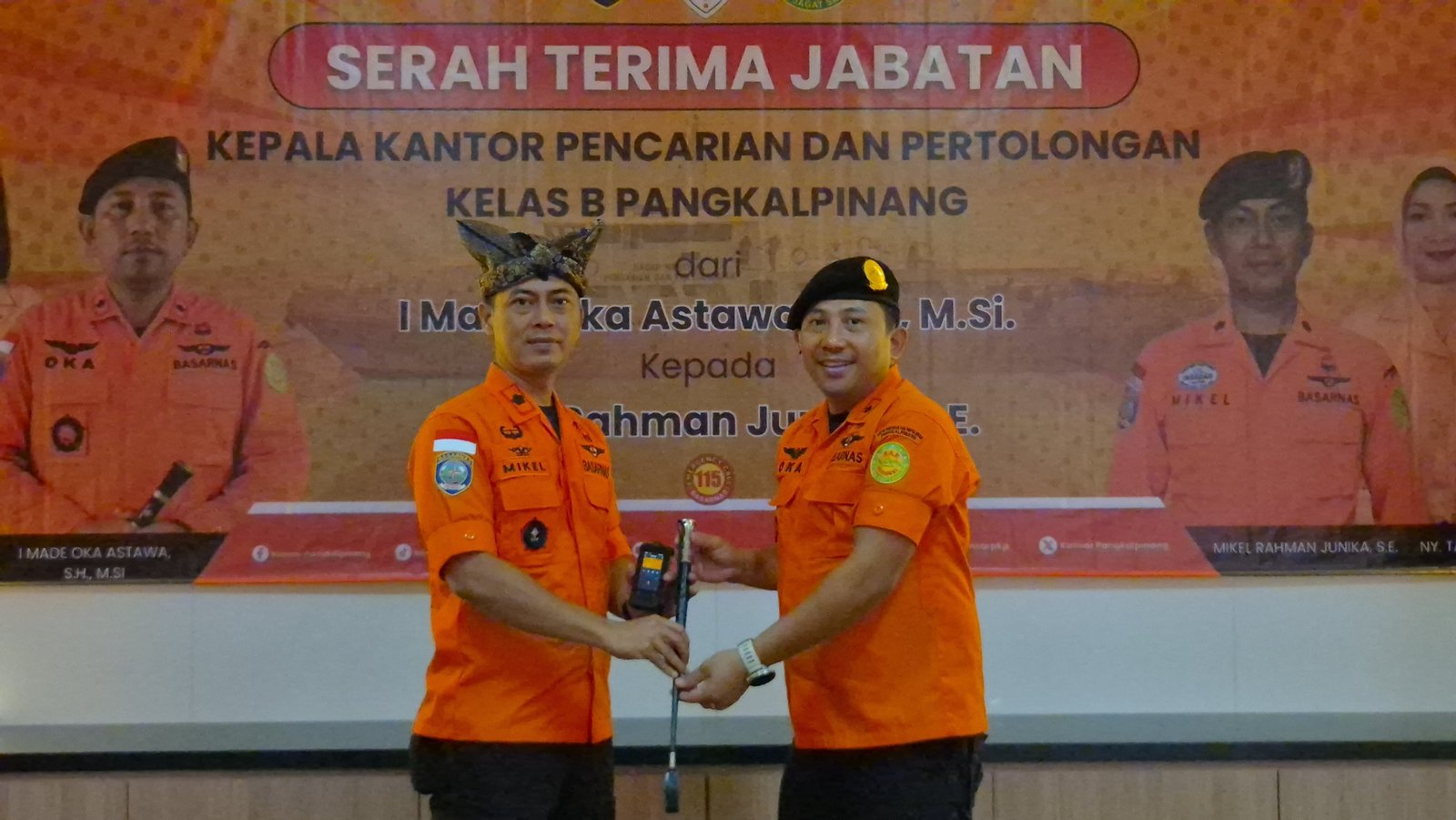 Sertijab tersebut secara simbolis menandai beralihnya tongkat kepemimpinan dari I Made Oka Astawa, S.H., M.Si. kepada Mikel Rahman Junika, S.E. sebagai Kepala Kantor Pencarian dan Pertolongan Pangkalpinang yang baru.