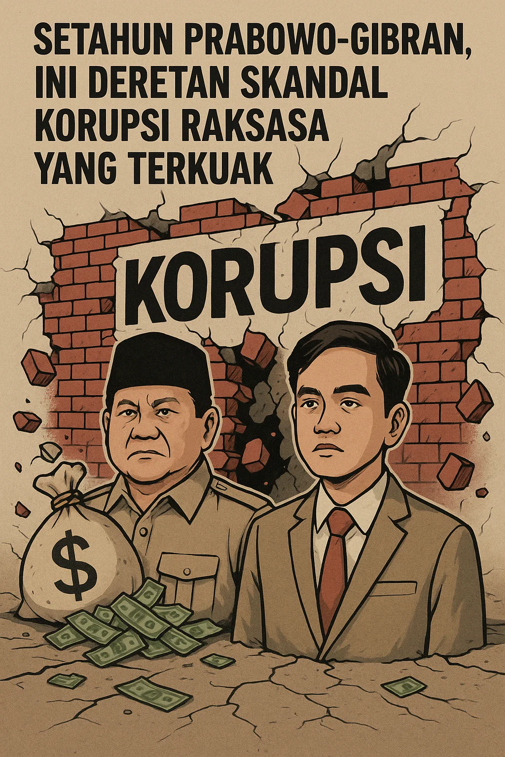 KBOBABEL.COM (JAKARTA) – Tepat satu tahun masa pemerintahan Presiden Prabowo Subianto dan Wakil Presiden Gibran Rakabuming Raka pada Senin (20/10/2025), publik menyoroti deretan skandal korupsi besar yang terungkap sepanjang 12 bulan terakhir. Dari kasus minyak Pertamina hingga suap vonis ekspor CPO, nilai kerugian negara ditaksir mencapai ratusan triliun rupiah. Senin (20/10/2025)