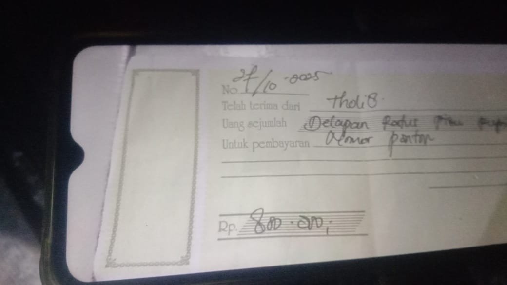 Pesan tersebut menandakan adanya mekanisme pungutan “legalitas semu” bagi para penambang. Lebih jauh, beredar pula dokumen pembagian dana Rp800 ribu yang menyebut rincian sebagai berikut: