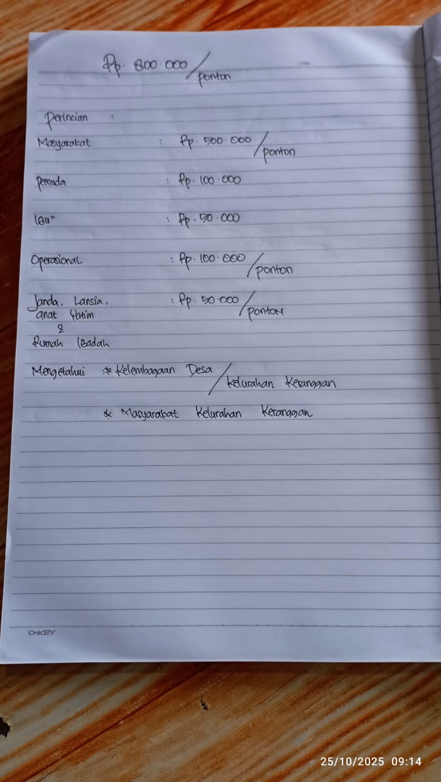Pesan tersebut menandakan adanya mekanisme pungutan “legalitas semu” bagi para penambang. Lebih jauh, beredar pula dokumen pembagian dana Rp800 ribu yang menyebut rincian sebagai berikut: