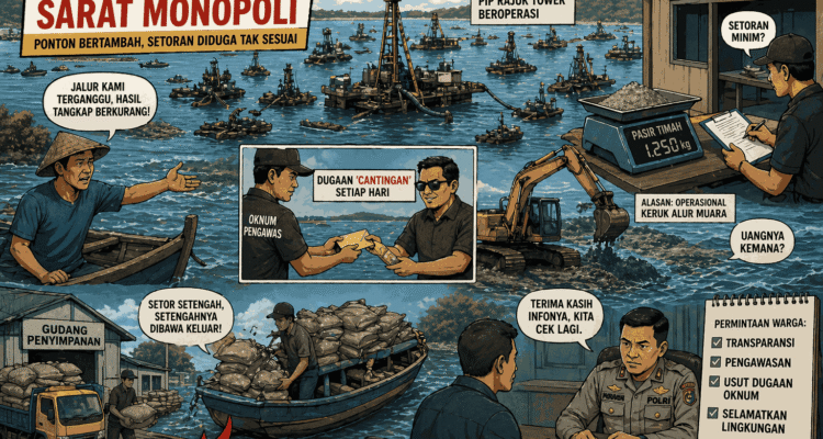 KBOBABEL.COM (SUNGAILIAT) – Aktivitas penambangan timah laut menggunakan puluhan ponton isap produksi