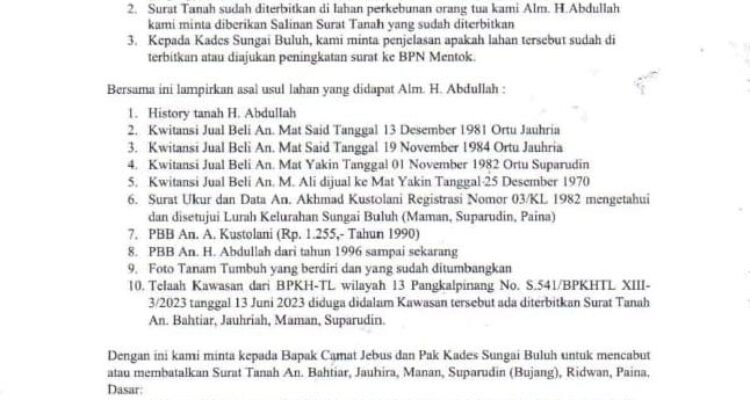 KBOBABEL.COM (JEBUS) — Sengketa lahan warisan kembali mencuat di Kecamatan Jebus, Kabupaten