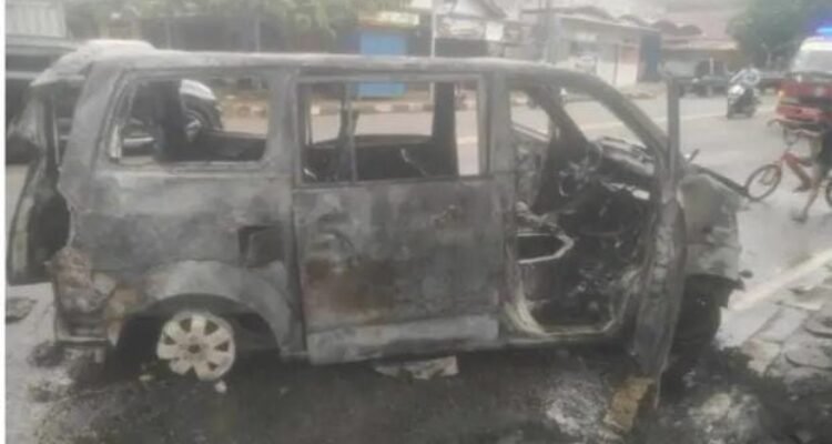 KBOBABEL.COM (PANGKALPINANG) — Kebakaran satu unit mobil Suzuki APV di area pengisian